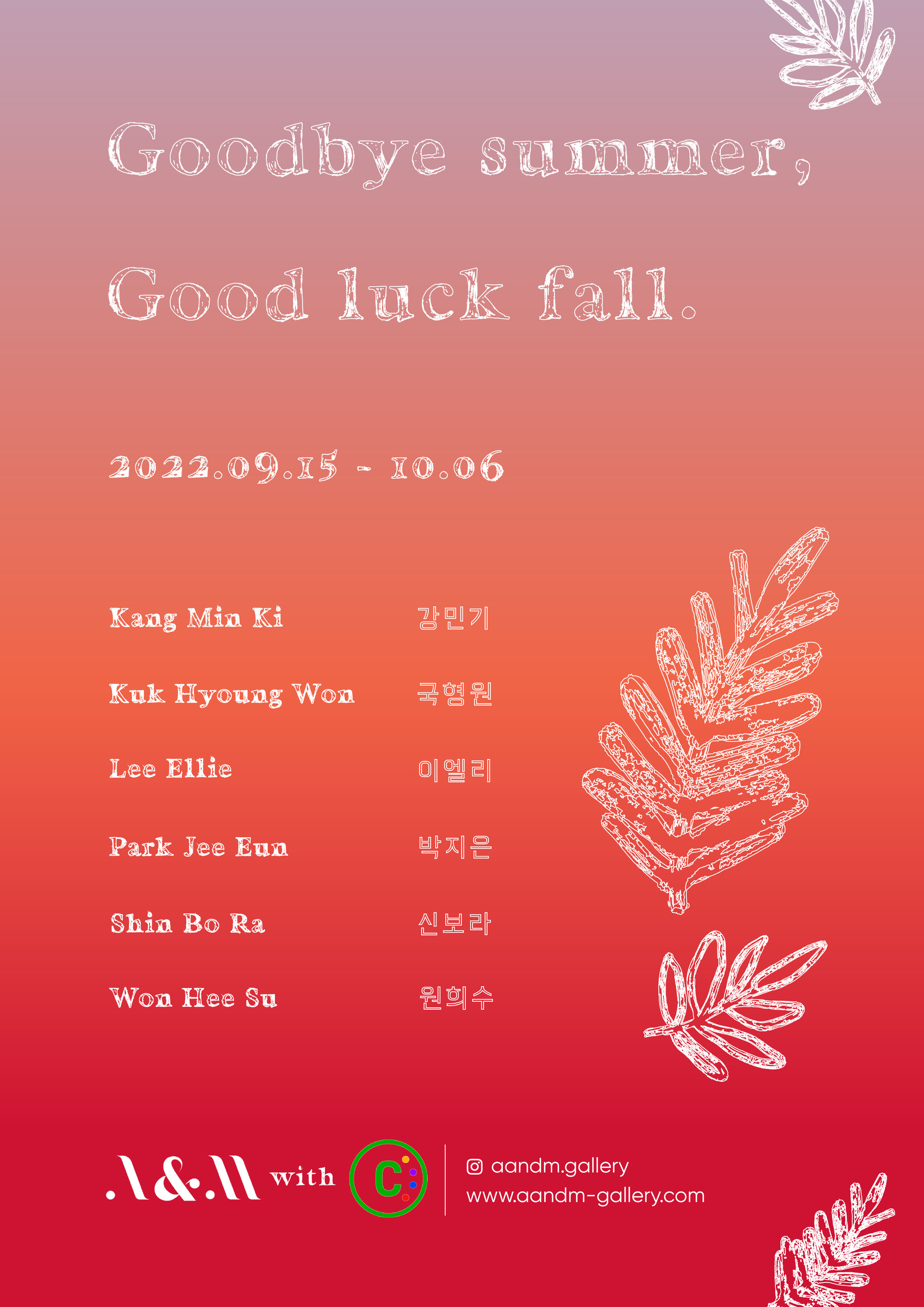 여름이 지나고 새로운 계절, 가을을 맞이하며 우리가 놓쳤던 여름날의 추억을 되새기며 일상의 환기, 마음의 감각을 깨우는 시간을 보낼 수 있기를 바라는 마음으로 <Goodbye summer, Good luck fall>을 선보입니다.