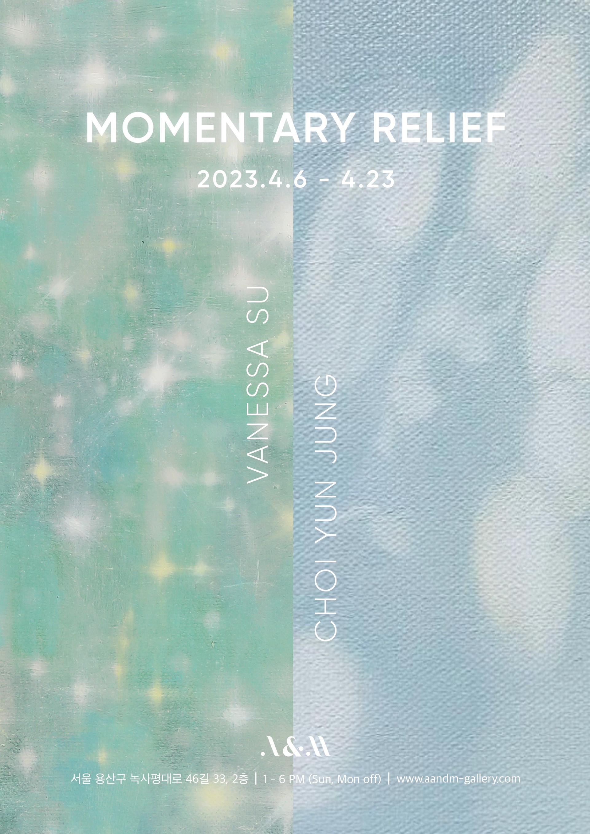 너무나도 친숙해서 쉽게 잊혀지곤 하는 빛과 그림자의 아름다움을 조화롭게 표현해내어 그림을 바라보는 순간 만으로도 ‘찰나의 명상’을 취할 수 있도록 기획된 ‘Momentary Relief’ 는 정수진, 최윤정 2인 작가의 참여로 이루어졌습니다.